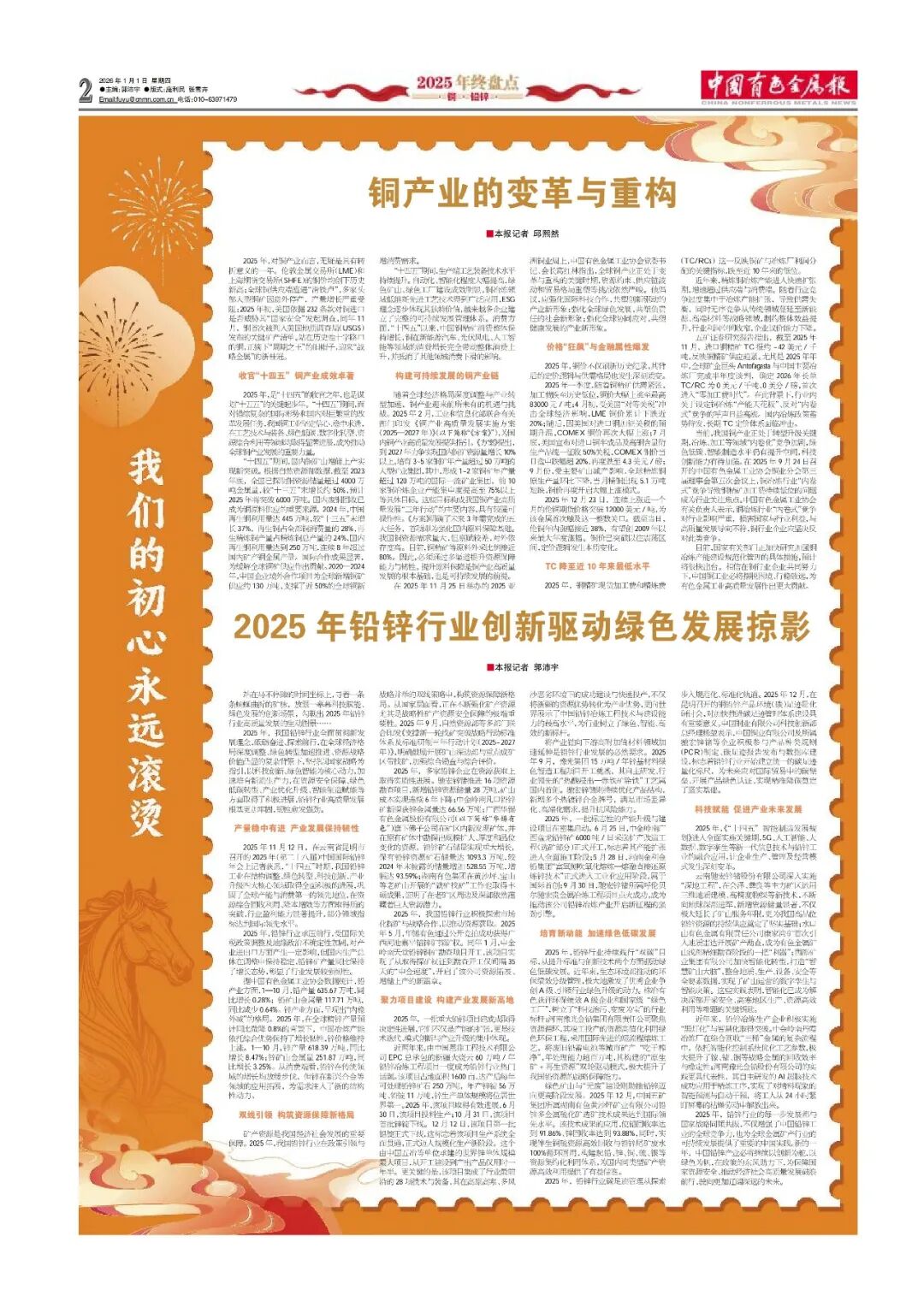 2025年,我国铅锌行业全面贯彻新发展理念,砥砺奋进、探索前行,在全球经济格局深度调整、绿色转型加速推进、资源战略价值凸显的复杂背景下,坚持以国家战略为指引,以科技创新、绿色智能为核心动力,加速培育新质生产力,在资源安全保障、绿色低碳转型、产业优化升级、智能制造赋能等方面取得了积极进展,铅锌行业高质量发展根基更加牢固,韧性愈发强劲。